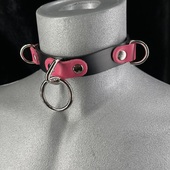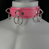 Genuine leather bondage collars in vibrant colors and designs. The collars featured in this section are made from great quality leather, hardware and fleece. Keeping the integrity of a bondage collar, all these collars have a solid metal ring on them. The ring is either a traditional O ring or a D ring. These bondage collars are available in many vibrant leather and fleece lining colors. These colors include red, black, pink, leopard, purple, blue, silver, red patent, shiny black patent, gold, green, pink, blue, yellow and so on. Most of the wide bondage collars are available in one size while others are available in different sizes.