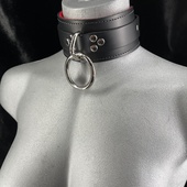Genuine leather bondage collars in vibrant colors and designs. The collars featured in this section are made from great quality leather, hardware and fleece. Keeping the integrity of a bondage collar, all these collars have a solid metal ring on them. The ring is either a traditional O ring or a D ring. These bondage collars are available in many vibrant leather and fleece lining colors. These colors include red, black, pink, leopard, purple, blue, silver, red patent, shiny black patent, gold, green, pink, blue, yellow and so on. Most of the wide bondage collars are available in one size while others are available in different sizes.